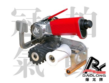 本机为手持式砂带研磨气动工具.具高机动性,可适用多种研磨材料.可以使用一般砂带研磨,作木工,STEET 研磨,铝合金研磨,也可以Non-Woven Nylon belt发丝带作Hair-line表面处理.PU滚轮有3种硬度选择.分别为:Hs TYPE C 10-15适合木工曲面.20-25适合金工和木工 25-35适合不锈钢或更换为橡胶轮(适合金属重切削).Hs TYPE A 60