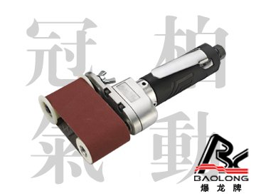 本机为手持式砂带研磨气动工具.具高机动性,可适用多种研磨材料.可以使用一 般砂带研磨,作木工,STEET 研磨,铝合金研磨,也可以Non-Woven Nylon belt发丝带作Hair-line表面处理.PU滚轮有3种硬度选择.分别为:Hs TYPE C 10-15适合木工曲面.20-25适合金工和木工 25-35适合不锈钢或更换为橡胶轮(适合金属重切削).Hs TYPE A 60